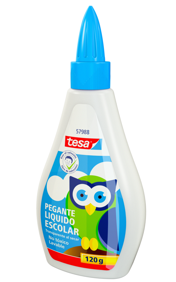 Pegante liquido tesa® con buena calidad de adherencia, seguro para tareas escolares.